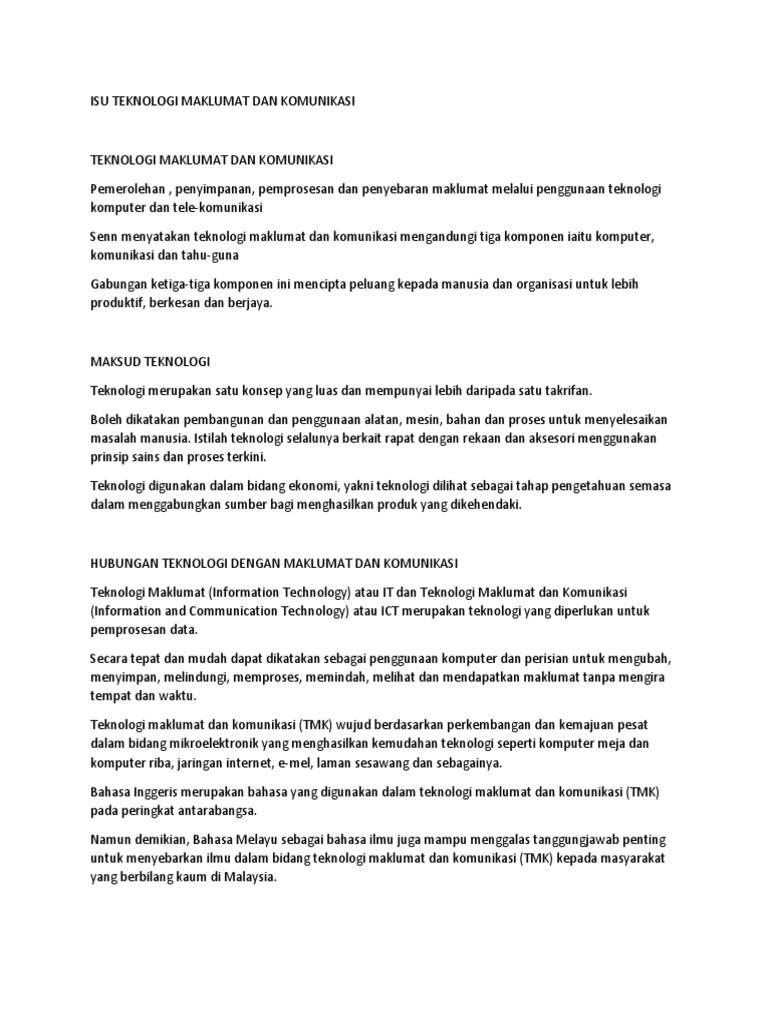 Isu Teknologi Maklumat Dan Komunikasi Pdf